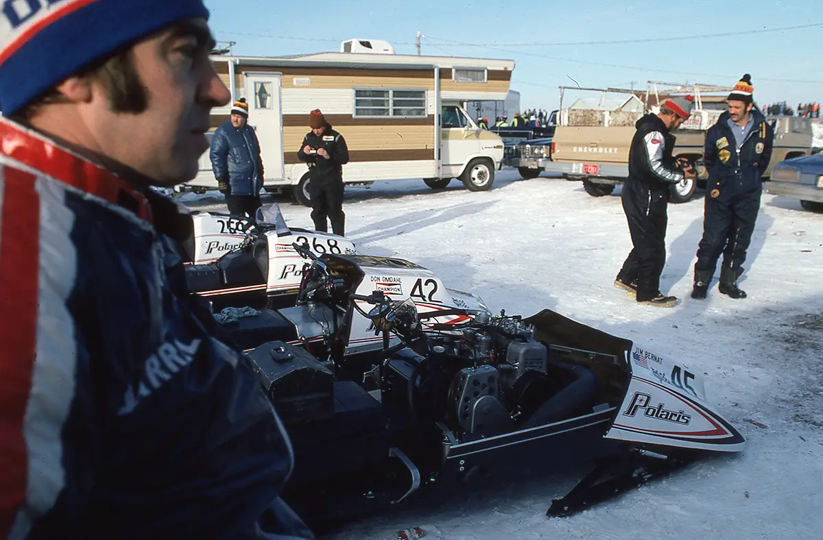 The 1976 season was not a great one for Polaris, mostly because Arctic Cat happened to be having a phenomenal year, and perhaps due to the loss of Larry Rugland and Leroy Lindblad to Ski-Doo, Jim Bernat, Don Omdahl and later in the season, Jerry Bunke, fought like hell for a lot of second places.